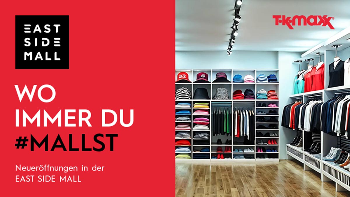 In der EAST SIDE MALL lässt TK Maxx die Herzen der Shoppingfans höherschlagen: Auf rund 1.160 Quadratmetern Verkaufsfläche erwarten die Besucher täglich neue Styles bekannter Top-Marken und Designer-Labels – und das bis zu 60 % günstiger (als UVP)! Rund 50 Mitarbeiterinnen finden in der neuen Filiale einen Arbeitsplatz. Mit der Eröffnung setzt das Off-Price-Unternehmen seinen Expansionskurs in Deutschland fort und bringt das beliebte Schatzsuche-Erlebnis nun auch in die EAST SIDE MALL. Das Off-Price-Konzept von TK Maxx steht für ein herausragendes Preis-Leistungs-Verhältnis, das Kundinnen begeistert.
